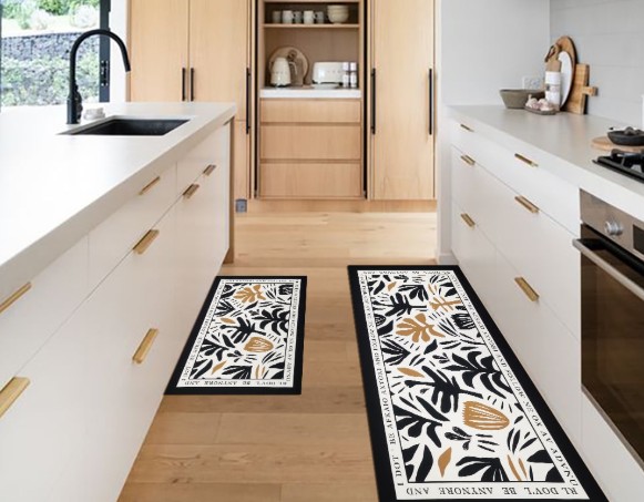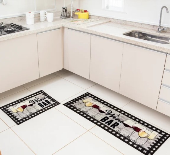 Um tapete idealizado para cada área garante que sua cozinha não só fique mais bonita, mas também mais prática e segura.