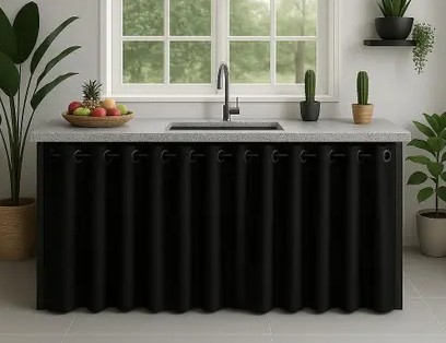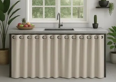 - Proteção contra poeira e gordura: A cortina ajuda a manter os objetos sob a pia limpos e protegidos do ambiente;