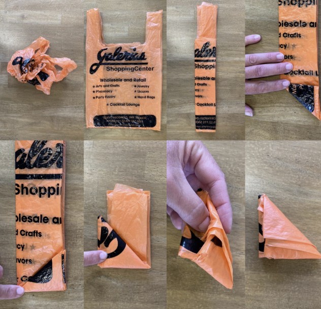 Dobre as sacolas em formato de triângulo (técnica do “sabonete”)
