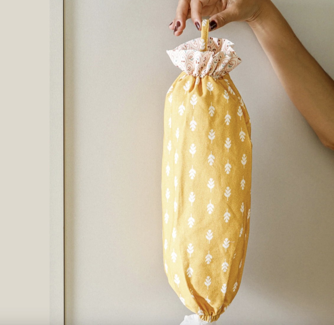 - Economia de espaço: Em vez de ocupar armários e gavetas, você pode pendurar o porta-sacola em um gancho ou na lateral de algum móvel;