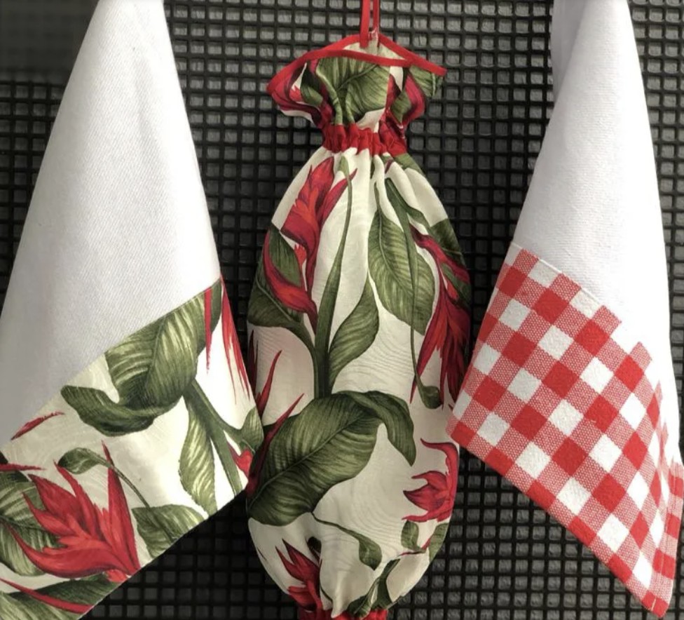 Puxa-sacos com desenhos de galinhas, frutas, flores ou utensílios de cozinha dão um toque alegre ao ambiente e sem dúvida, são os mais usados hoje em dia.